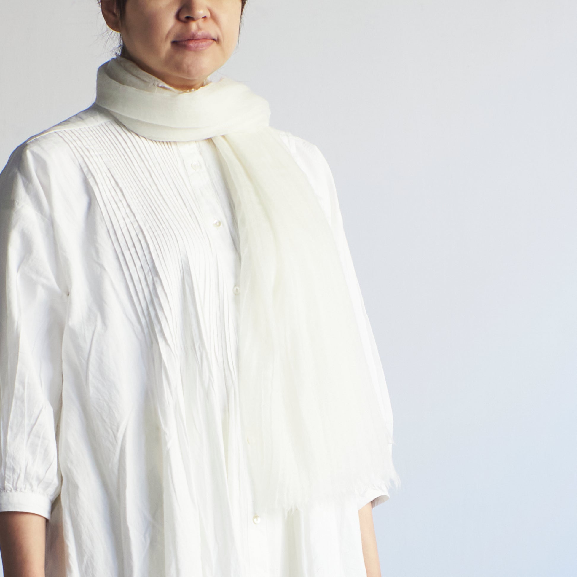 冬は首に巻いてダウンやコートの下に入れれば、コーディネートを気にせずしっかり防寒もできます。薄手のカシミヤガーゼは一日の中の寒暖差が激しい春、秋にもおすすめです。