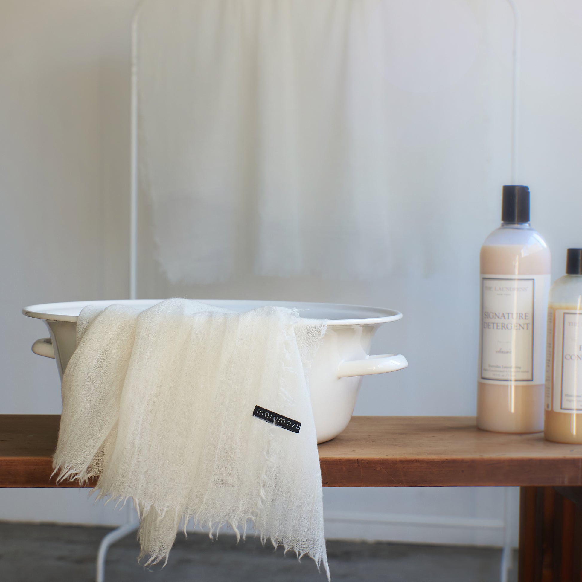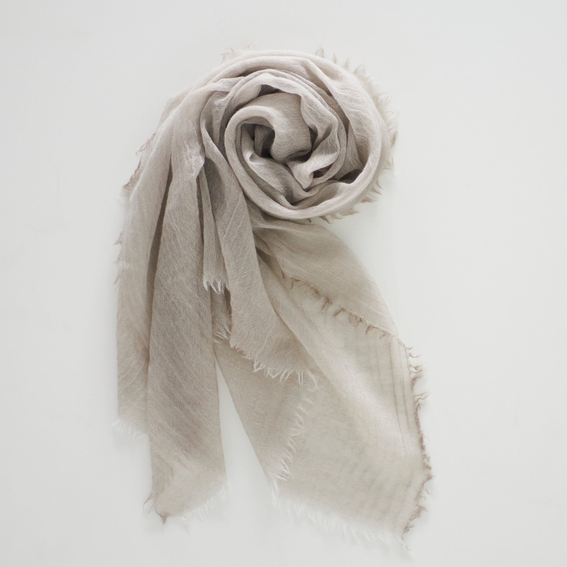 巻くと驚くほど軽く、薄いのに暖かいカシミヤガーゼストール。