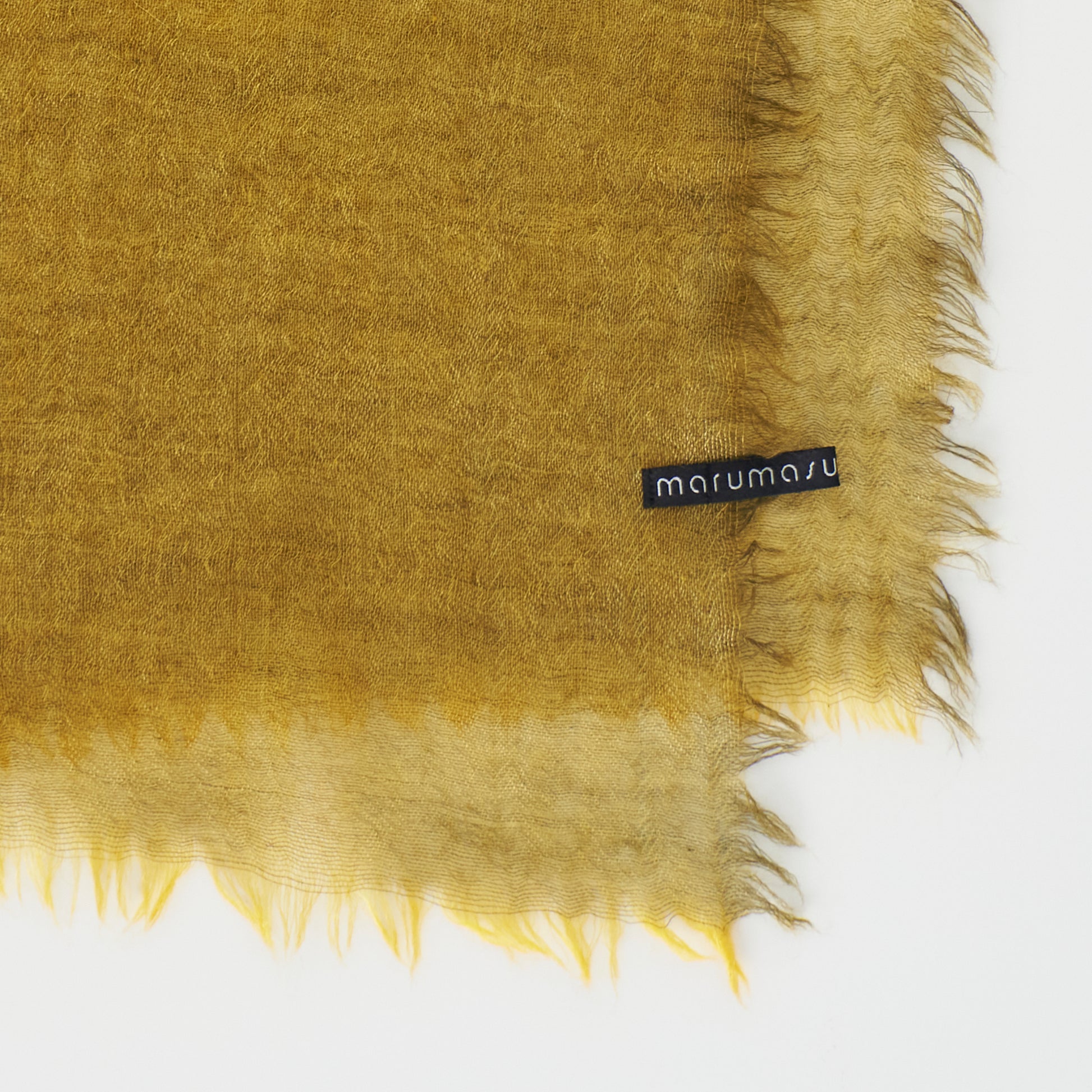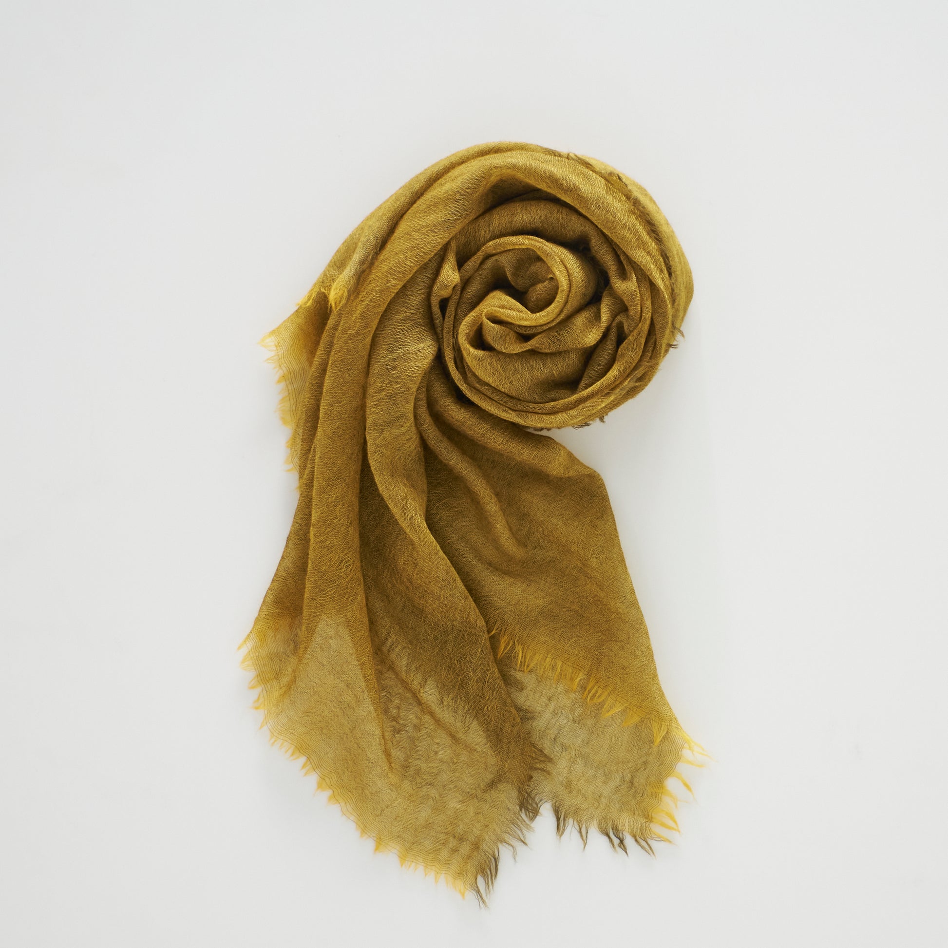一度染めのタテと、二度染めたヨコの深みのある色合いの違いを見て、巻いて、羽織って楽しんでください。