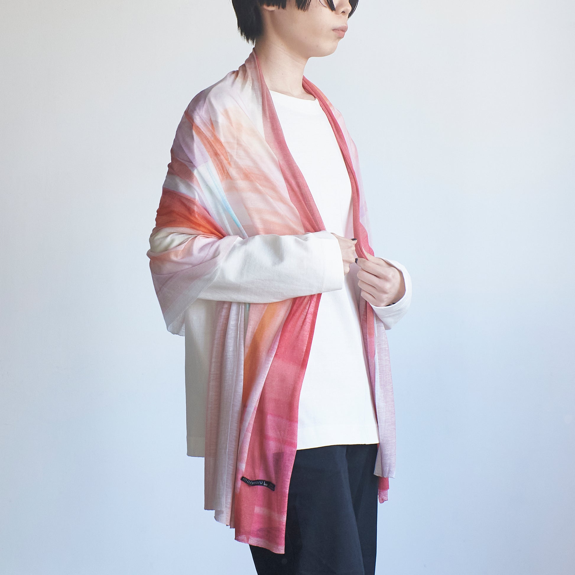 シワも気にならず、アクセサリー感覚で身につけられる使い勝手のいい1枚です。初夏の日差しに負けず、お出掛けした先で逃げ込んだ、冷房の効いた部屋の寒暖差にも重宝します。いつものコーディネ―トのさりげないアクセントに。ギフトにもおすすめです。